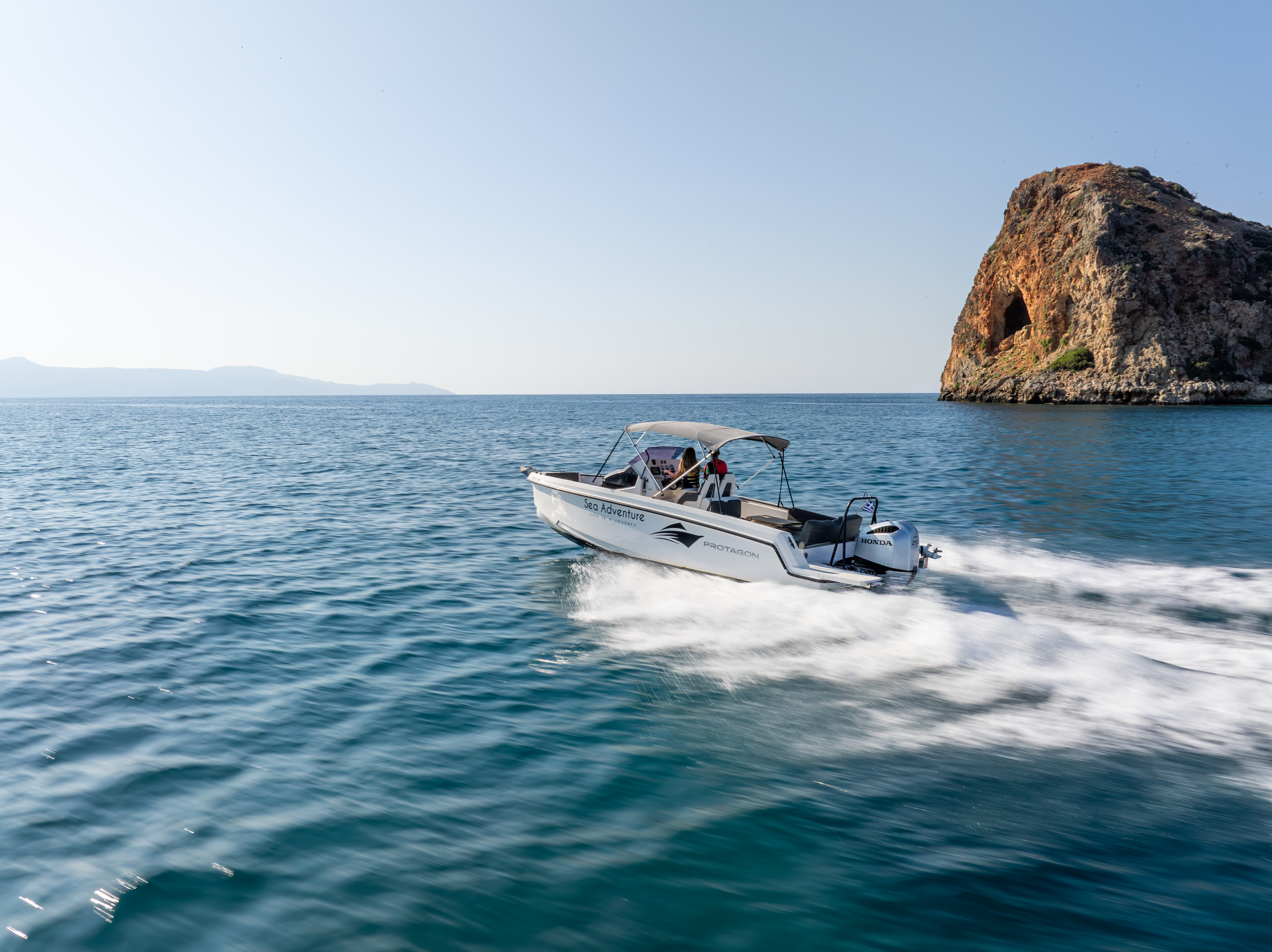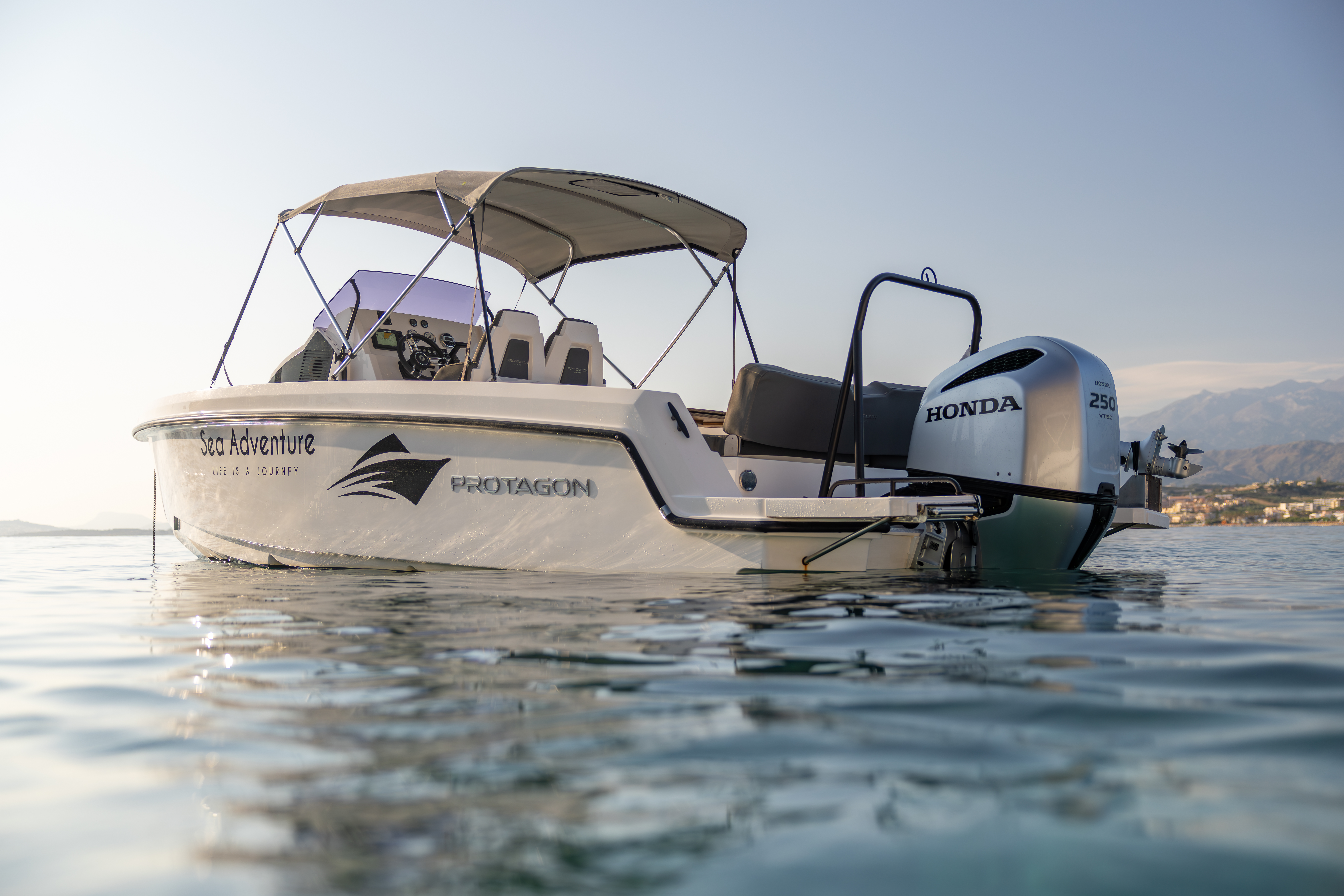 Le Protagon 20 peut accueillir des moteurs hors-bord jusqu’à 200 ch, tandis que le 25 peut accueillir des moteurs hors-bord jusqu’à 300 ch, offrant une accélération puissante, une maniabilité réactive et des performances de croisière impressionnantes.